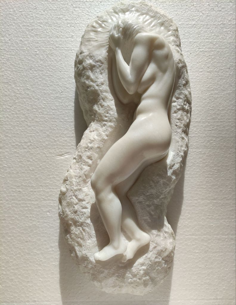 Scultura in marmo bianco Portogallo. Dimensioni: 38 x 17 x 11 cm.